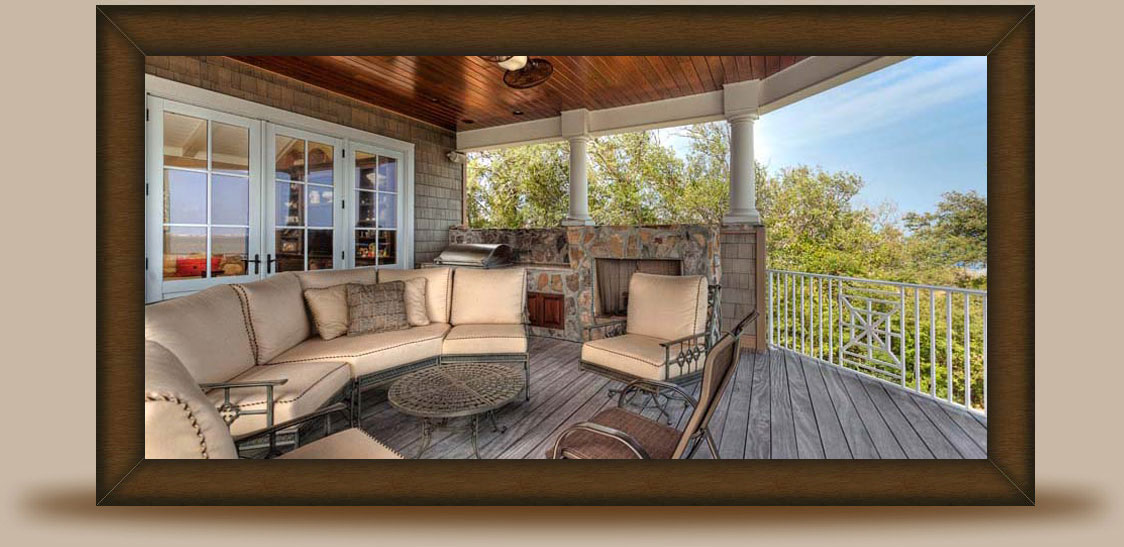 This waterfront home features stylish solid cypress columns, milled locally on the gulf coast. Constructed on wood pilings, the home’s appealing exterior facade is hard-coat stucco, applied over concrete board. Tongue-and-groove ceilings give the home a charming, old country feel while the modern commercial kitchen boasts custom-built cabinetry and marble countertops styled to please the most discriminating chef.